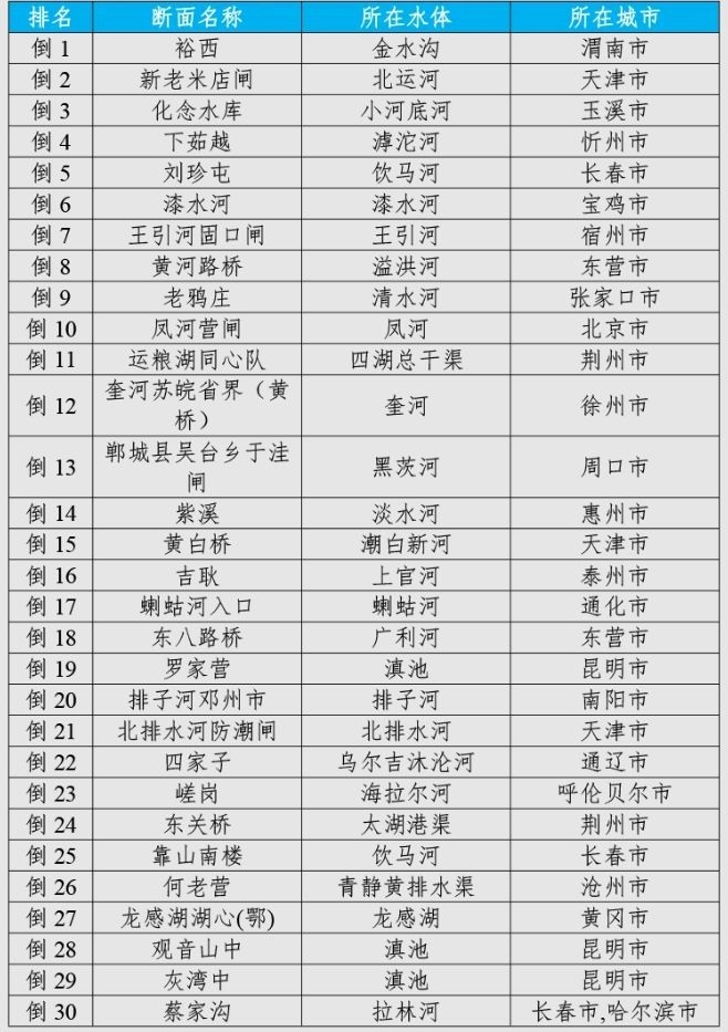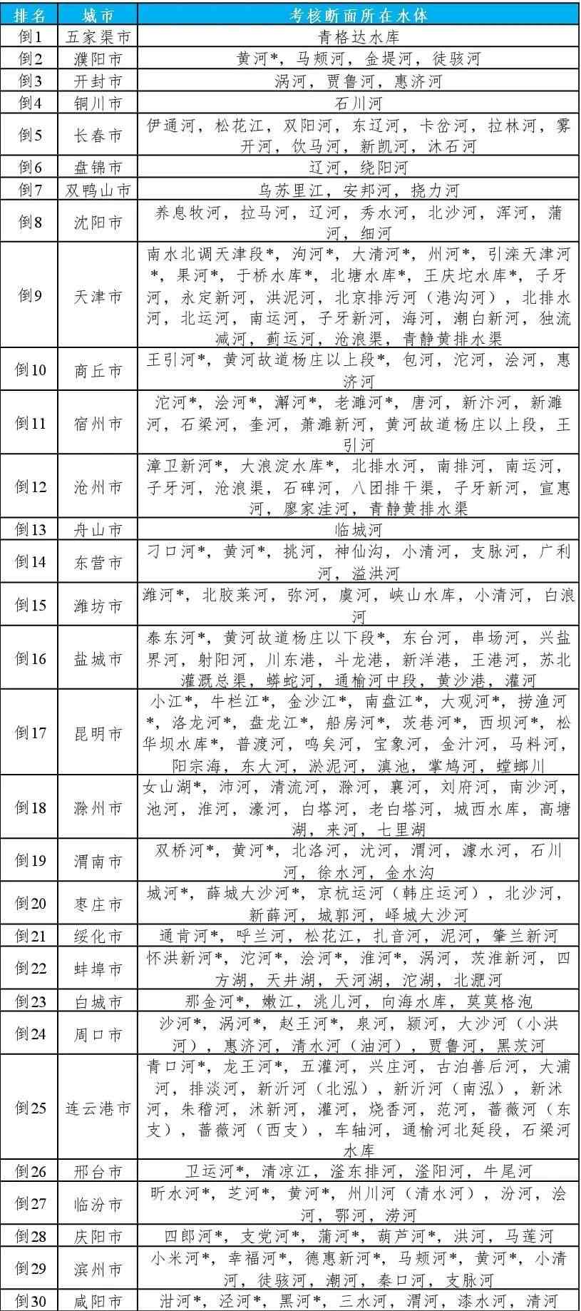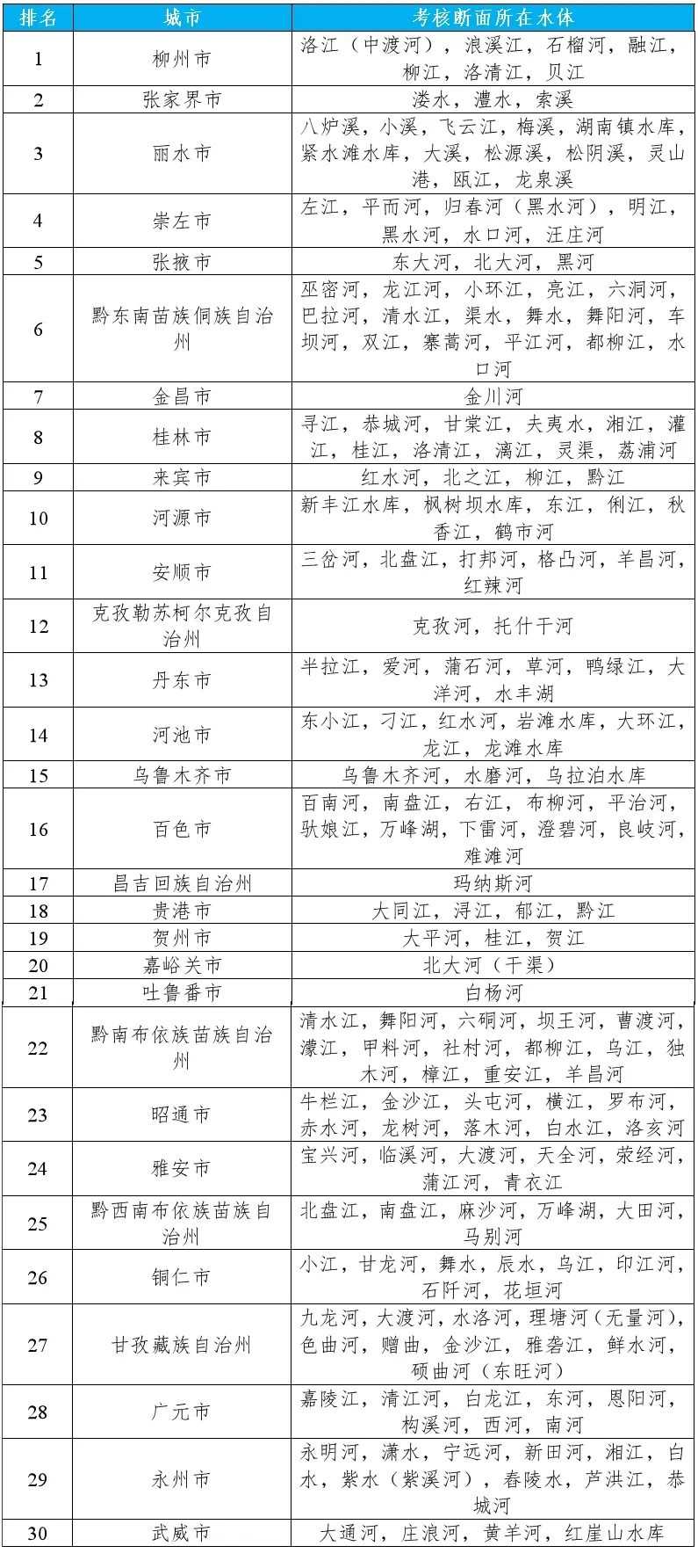 地級(jí)及以上城市國(guó)家地表水考核斷面排名