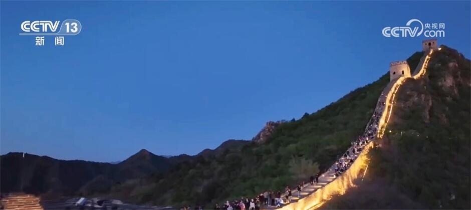 在密云,司馬臺長城也在夜間被“點亮”,如火龍般在山間蜿蜒。游客可以提燈夜游,感受古長城的磅礴氣勢,也能泛舟河面,遠望山巒朦朧,近觀燈火輝煌。景區(qū)還推出音樂、舞蹈、詩歌和繪畫相結合的演出活動,無人機在夜空中的飛行表演也給市民游客帶來了震撼的視聽享受。