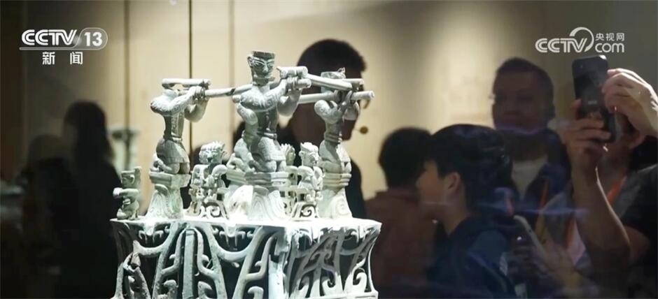 在三星堆博物館的展廳內,一件件精美的文物映入眼簾,造型獨特、工藝精湛,體現(xiàn)了古蜀人民高超的鑄造技術。其中,造型繁復的青銅神壇、精致肅穆的大立人、精美絕倫的鳥足神像等國寶級文物讓游客們感受到歷史的厚重和古蜀文明的獨特魅力。