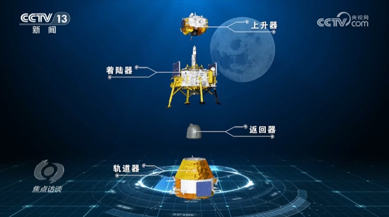 嫦娥六號(hào)探測(cè)器由4部分組成,分別是負(fù)責(zé)從月面起飛的上升器、承擔(dān)落月和采集任務(wù)的著陸器、將帶著月壤樣品再入地球的返回器以及承擔(dān)地月往返運(yùn)輸任務(wù)的軌道器。科研人員為嫦娥六號(hào)設(shè)計(jì)了11個(gè)階段的飛行任務(wù),每個(gè)階段都環(huán)環(huán)相扣。