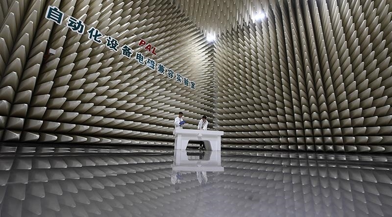 2023年7月7日,在南瑞集團有限公司自動化設(shè)備電磁兼容實驗室,科研人員在進行輻射發(fā)射實驗準備工作。