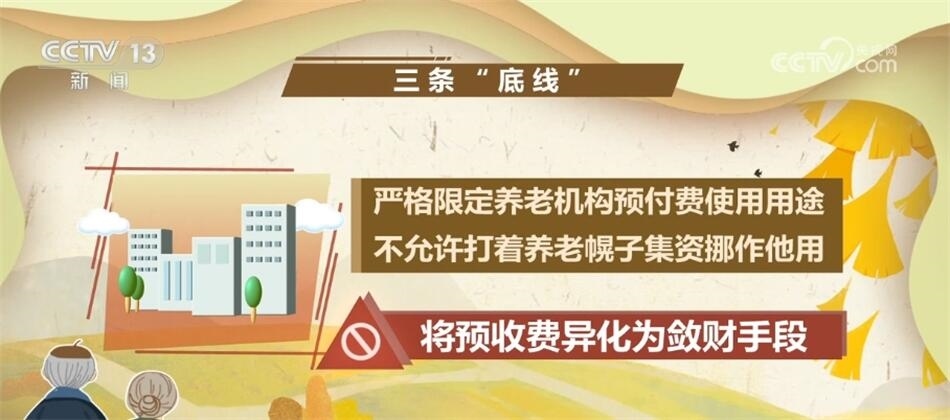 發(fā)布會上,民政部相關(guān)負責人介紹,《意見》還明確了三條安全“底線”:第一條是嚴禁養(yǎng)老機構(gòu)超過床位供給能力“一床多賣”;第二條是嚴格限定養(yǎng)老機構(gòu)預(yù)付費使用用途,不允許打著養(yǎng)老幌子集資挪作他用,將預(yù)收費異化為斂財手段;第三條是明確不得以承諾還本付息、給予其他投資回報等方式,誘導(dǎo)老年人及家屬交費,這是典型的非法集資行為。