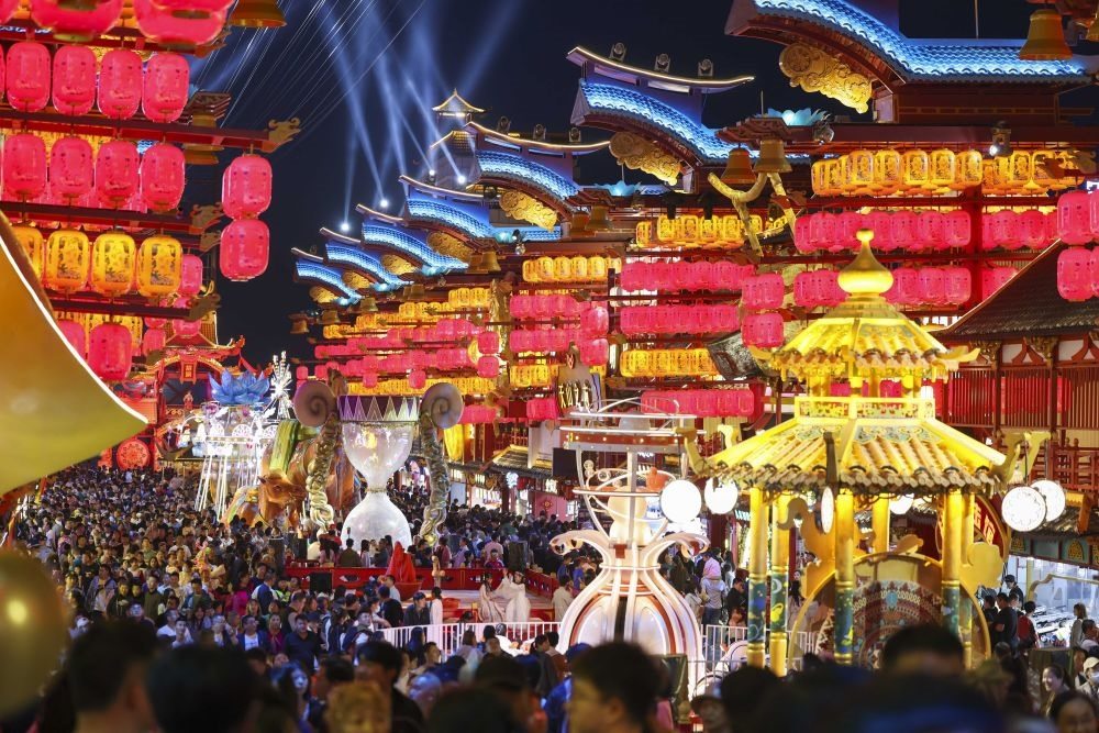 人們?cè)谛陆疄豸斈君R市水磨溝區(qū)天山明月城游玩(2024年5月4日攝)。新華社記者 胡虎虎 攝
