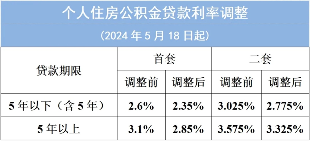 2024年5月18日之前申請(qǐng)且未發(fā)放的個(gè)人住房公積金貸款,以及2024年5月18日(含)之后申請(qǐng)的個(gè)人住房公積金貸款,均執(zhí)行調(diào)整后的利率。