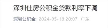 5月18日,“深圳公積金”微信公眾號(hào)發(fā)布消息,中國人民銀行決定,自2024年5月18日起,下調(diào)個(gè)人住房公積金貸款利率0.25個(gè)百分點(diǎn),5年以下(含5年)和5年以上首套個(gè)人住房公積金貸款利率分別調(diào)整為2.35%和2.85%,5年以下(含5年)和5年以上第二套個(gè)人住房公積金貸款利率分別調(diào)整為不低于2.775%和3.325%。