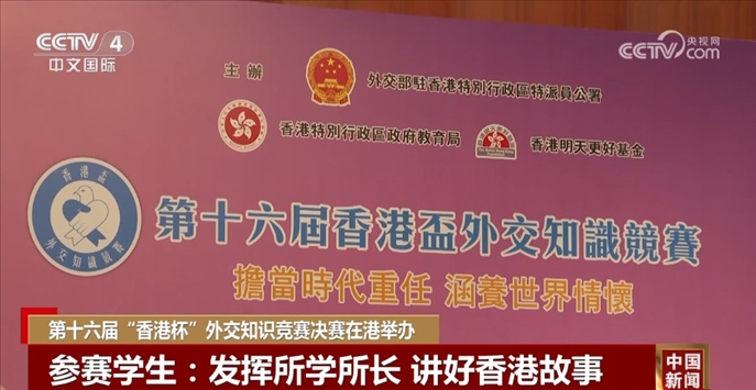 央視網(wǎng)消息:第十六屆“香港杯”外交知識(shí)競賽決賽暨頒獎(jiǎng)典禮5月18日在港舉辦。今年競賽以“擔(dān)當(dāng)時(shí)代重任 涵養(yǎng)世界情懷”為主題,吸引了全港263所中小學(xué)近7萬人報(bào)名參賽。參賽學(xué)生表示,通過參加競賽進(jìn)一步增強(qiáng)了民族自豪感,立志發(fā)揮所學(xué)所長,講好香港故事和中國故事。