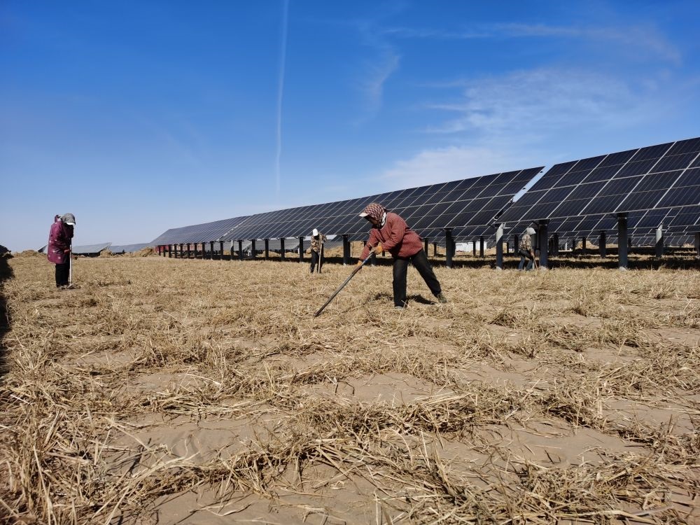 “光伏板可以遮陰,減少水分蒸發(fā)。板間空地上種上鄉(xiāng)土草和果樹,既能固沙,又能生產(chǎn)牲畜飼料和藥材、水果?!痹跒跆m布和沙漠85萬千瓦“光伏+生態(tài)治理”項(xiàng)目現(xiàn)場,磴口縣防沙治沙局副局長何文強(qiáng)介紹說,該項(xiàng)目的光伏板間距為12米、板下高度為1.8米,空間足夠灌木、草等植物生長,建成后草方格中將種植梭梭等耐旱植物,并在此基礎(chǔ)上發(fā)展肉蓯蓉等特色種植、養(yǎng)殖項(xiàng)目,從而實(shí)現(xiàn)生態(tài)建設(shè)、新能源開發(fā)、特色產(chǎn)業(yè)發(fā)展共贏。