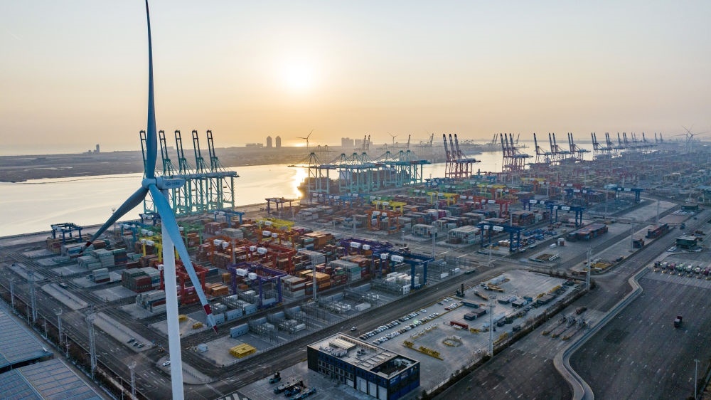 看似平常的碼頭作業(yè),背后卻另有玄機——整個過程達到了“零碳”排放。2021年底,隨著兩臺風機葉片緩緩啟動,這座全球首個“智慧零碳”碼頭的智慧綠色能源系統(tǒng)開始并網發(fā)電,通過風電、光伏發(fā)出的綠色能源,源源不斷為碼頭生產提供能源。
