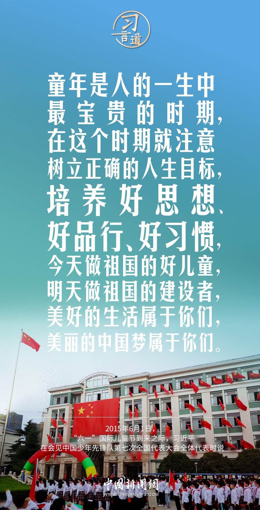 今天是“六一”國際兒童節(jié),習(xí)近平總書記曾在多個(gè)場合表達(dá)對(duì)少年兒童的關(guān)懷和期望,希望少年兒童從小立志向、有夢想。