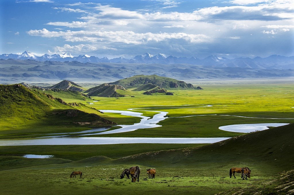 位于天山南麓的巴音布魯克既是中國(guó)僅次于內(nèi)蒙古鄂爾多斯的第二大草原,又是中國(guó)最大的高山草原,巴音布魯克草原共有大小13處泉水,7個(gè)湖泊,以及20條河流。蜿蜒在草原上的開(kāi)都河素有“九曲十八彎”的美稱。