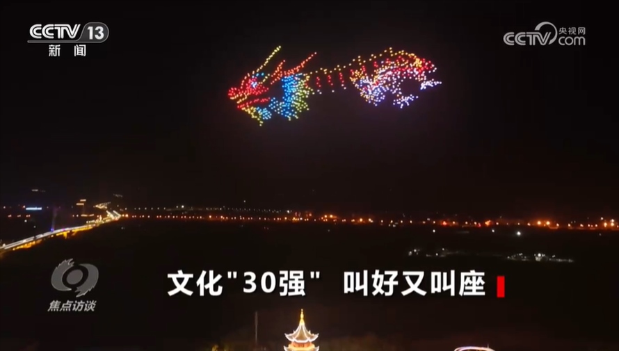 6月1日晚,在寧波方特東方神畫主題樂園內(nèi),1000架無人機點亮夜空,為現(xiàn)場游客帶來一場驚奇的視覺盛宴。無人機表演團隊來自于上榜“2024·全國文化企業(yè)30強”的華強方特文化科技集團股份有限公司。飛行團隊平時的表演內(nèi)容,除了大家熟知的卡通動漫形象,還有經(jīng)過反復篩選的諸如龍、鳳等中華傳統(tǒng)文化標識的圖案,包括古城、古塔、歷史文化建筑等極具屬地文化特色的元素。