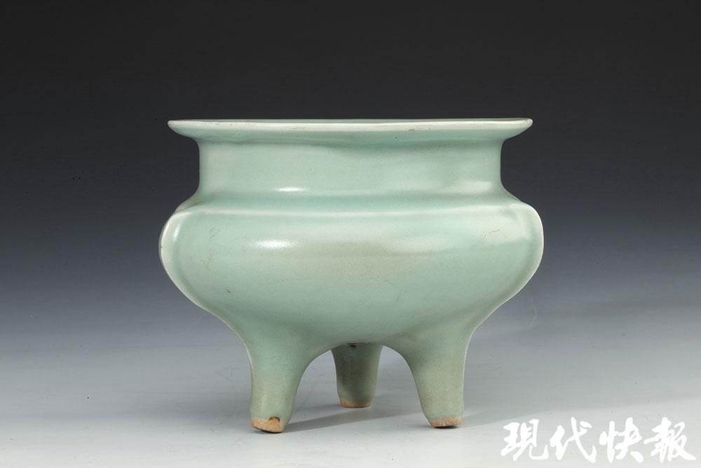 △南宋龍泉窯梅子青釉鬲式爐 無錫博物院藏