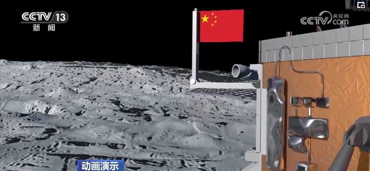 空天兔:著陸器和上升器組合體先進(jìn)行了幾個(gè)小時(shí)的鉆取,就是把一個(gè)長(zhǎng)長(zhǎng)的鉆頭伸入月面,可以采集月表以下的樣品,休息了幾小時(shí)后,當(dāng)鵲橋二號(hào)姐姐再次發(fā)來指令,著上組合體又用機(jī)械臂進(jìn)行了十多個(gè)小時(shí)的表取采樣,也就是一鏟子一鏟子地挖月球表面的土壤。過程很漫長(zhǎng),可不像你剛剛抓住我們能那么輕松。采樣完成后,一面五星紅旗在月球背面展開。哇,特別鮮艷。