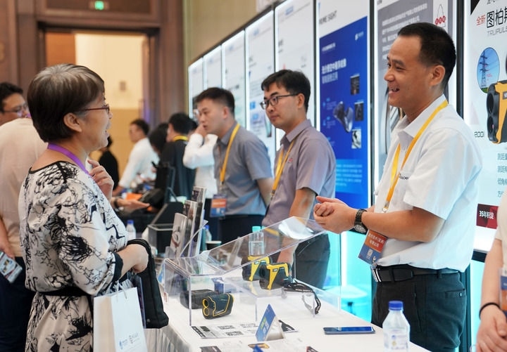 2024年8月8日,在上海舉行的第七屆進(jìn)博會(huì)技術(shù)裝備、汽車展區(qū)展前供需對(duì)接會(huì)現(xiàn)場(chǎng),展商工作人員(右)向采購商介紹企業(yè)產(chǎn)品。新華社發(fā)(陳浩明 攝)