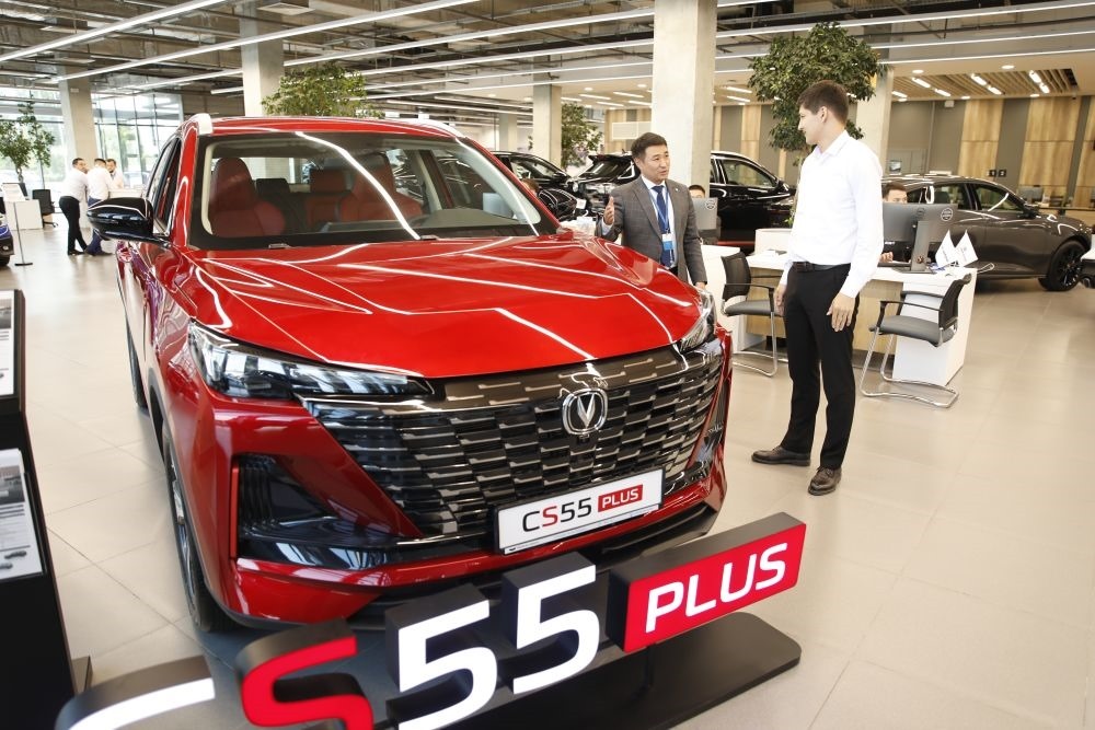 2024年6月24日,顧客在哈薩克斯坦阿斯塔納了解中國品牌汽車。新華社發(fā)(奧斯帕諾夫攝)