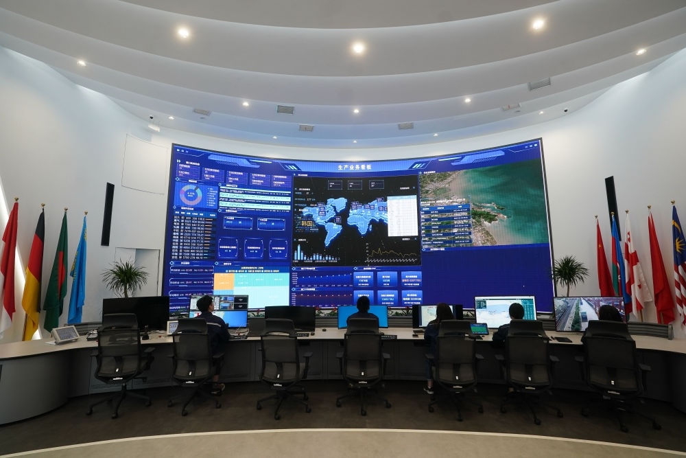 2023年5月9日,工作人員在中哈連云港物流合作基地數(shù)字化調(diào)度中心查看實時作業(yè)數(shù)據(jù)。