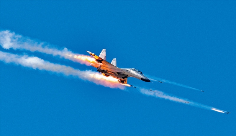 西部戰(zhàn)區(qū)空軍航空兵某旅緊貼任務(wù)需要,堅持不懈大抓實戰(zhàn)化軍事訓練,加強重難點課目專攻精練。圖為2023年10月該旅在訓練中發(fā)射火箭彈。 喻澤琪/攝