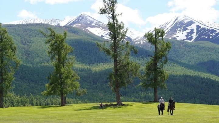 游客在新疆阿勒泰地區(qū)哈巴河縣的草原上騎馬游玩(2024年6月4日攝)。新華社記者 阿曼 攝