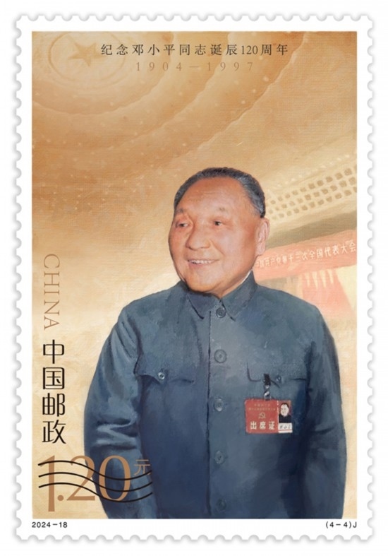 中國郵政發(fā)行《紀(jì)念鄧小平同志誕辰120周年》紀(jì)念郵票