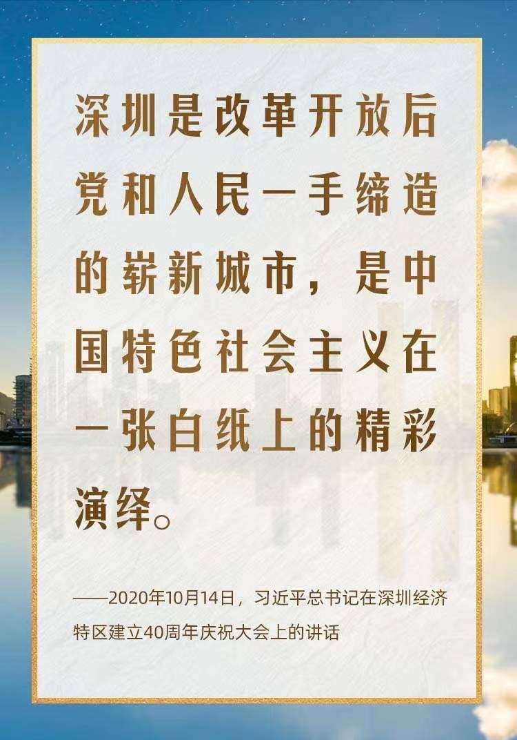 2020年10月,在慶祝深圳經(jīng)濟特區(qū)建立40周年之際,習近平總書記又一次來到這里,出席慶祝大會,強調(diào)改革不停頓、開放不止步,在更高起點上推進改革開放,推動經(jīng)濟特區(qū)工作開創(chuàng)新局面。