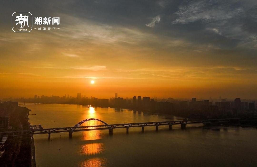 杭州錢塘江畔,一輪紅日噴薄而出,映紅了江面 記者 董旭明 攝