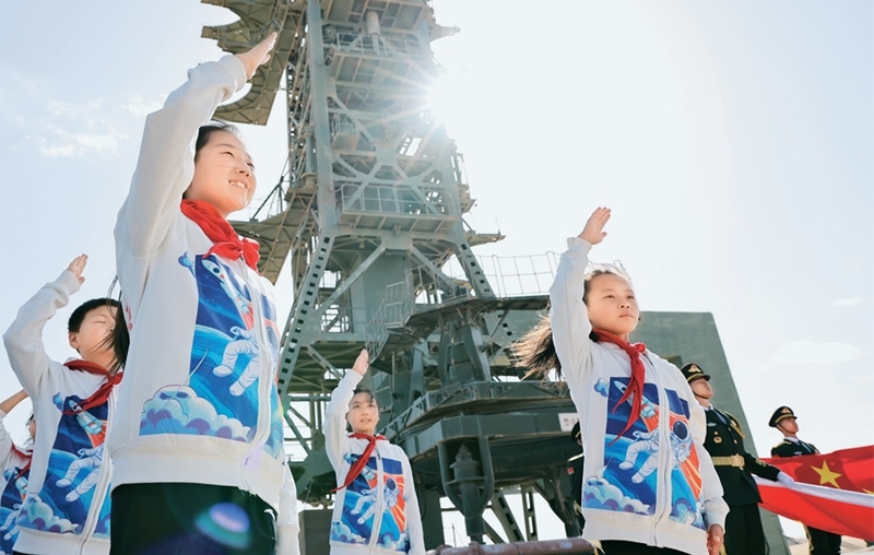 少先隊(duì)是建設(shè)社會(huì)主義和共產(chǎn)主義的預(yù)備隊(duì)。廣大少先隊(duì)員在少先隊(duì)這所大學(xué)校里立志向、修品行、練本領(lǐng),從小培養(yǎng)熱愛黨、熱愛祖國(guó)、熱愛人民的情懷,展現(xiàn)出朝氣蓬勃的精神風(fēng)貌。2024年4月24日是第九個(gè)“中國(guó)航天日”,“紅領(lǐng)巾愛祖國(guó)——我心中的五星紅旗”主題活動(dòng)在中國(guó)酒泉衛(wèi)星發(fā)射中心東方紅衛(wèi)星發(fā)射場(chǎng)舉行。圖為當(dāng)日,來自內(nèi)蒙古、甘肅、四川等地的少先隊(duì)員在中國(guó)酒泉衛(wèi)星發(fā)射中心東方紅衛(wèi)星發(fā)射塔架下敬隊(duì)禮。 新華社記者 金立旺/攝