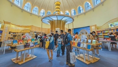 2024上海書(shū)展現(xiàn)場(chǎng),讀者在上海外語(yǔ)教育出版社展臺(tái)選購(gòu)書(shū)籍。王 初攝(影像中國(guó))