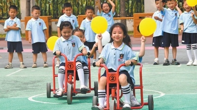 幼有所育河北省邯鄲市永年區(qū)第二幼兒園,孩子們在進行騎小車比賽。胡高雷攝(影像中國)2023年普惠性幼兒園達23.6萬所,占總數(shù)的86.2%