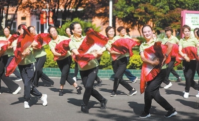 老有所養(yǎng)貴州省黔西市老年大學(xué),老年人在學(xué)習(xí)舞蹈等特色課程。周訓(xùn)超攝(影像中國)