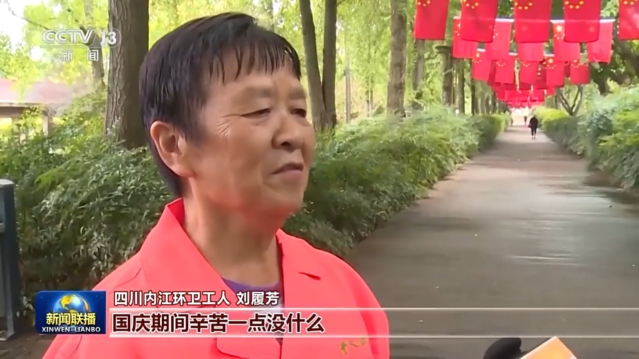 四川內江環(huán)衛(wèi)工人 劉履芳:國慶期間辛苦一點沒什么,希望市民過一個開心、整潔的國慶假期。