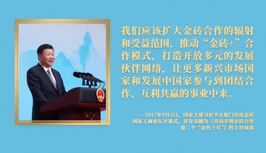 面向未來(lái),金磚國(guó)家敞開(kāi)大門(mén)謀發(fā)展、張開(kāi)懷抱促合作。中國(guó)將攜手金磚伙伴,推動(dòng)“大金磚合作”不斷取得新成果。