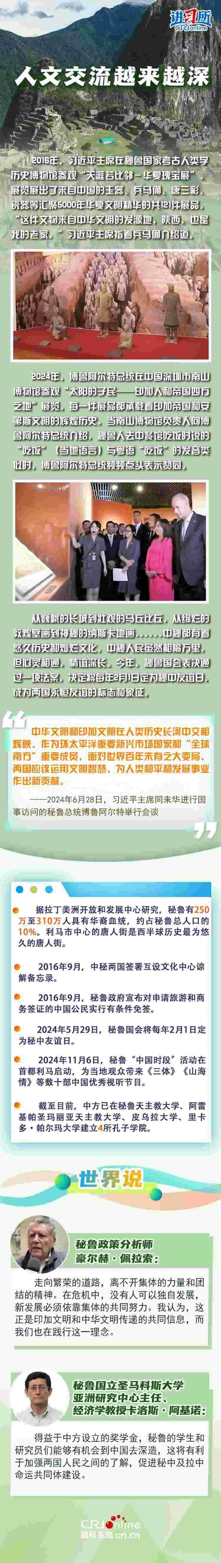 時(shí)隔八年,習(xí)近平主席的秘魯之行即將開啟,兩國元首半年內(nèi)實(shí)現(xiàn)互訪,體現(xiàn)出雙方高水平的政治互信。中秘這對跨洋“友鄰”也必將在元首外交的戰(zhàn)略引領(lǐng)下,抒寫更多民相親、心相通的動人故事。
