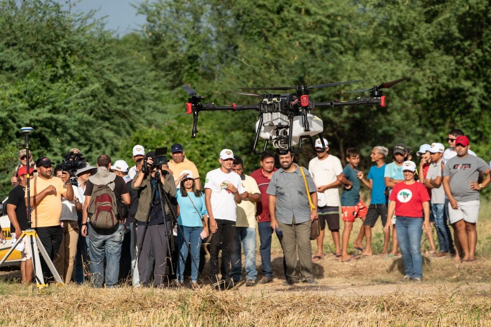 2024年2月2日,中巴農(nóng)業(yè)機(jī)械化合作示范項(xiàng)目啟動儀式在巴西阿波迪舉行,第一批來自中國7家農(nóng)機(jī)企業(yè)共31臺(件)設(shè)備正式交付給巴西農(nóng)村勞動者組織。這是人們觀看一款中國生產(chǎn)的農(nóng)用無人機(jī)。