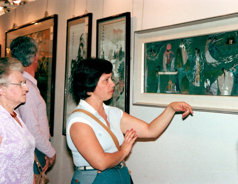 1983年5月24日至7月31日,中國經(jīng)濟(jì)貿(mào)易展覽會在巴西圣保羅和里約熱內(nèi)盧舉辦。這是巴西觀眾在展覽會上欣賞貝雕羽毛畫。