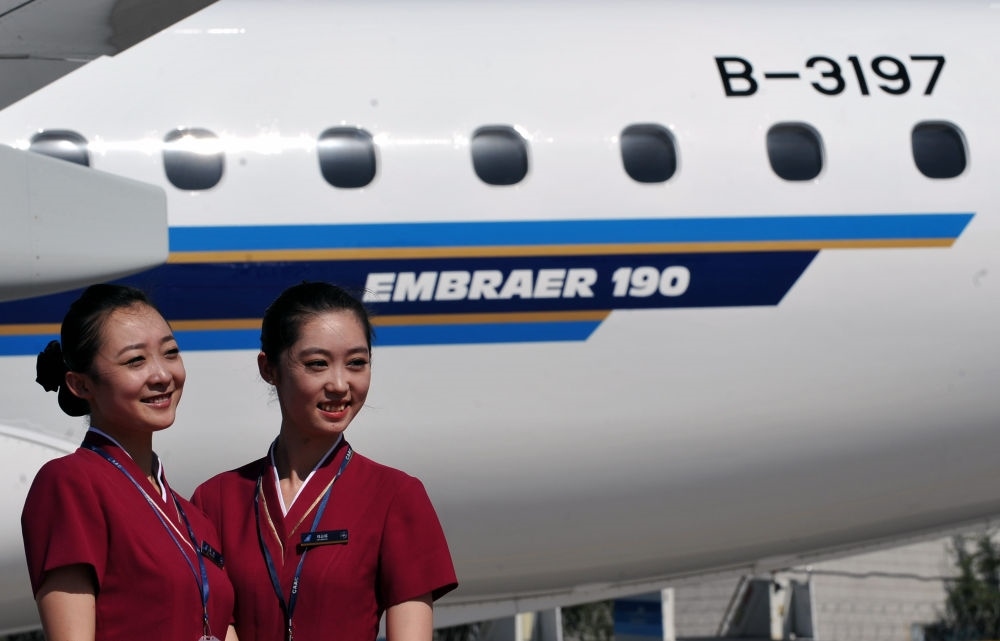 2011年8月16日,巴西航空工業(yè)公司生產(chǎn)的EMB190噴氣式飛機(jī)抵達(dá)烏魯木齊國際機(jī)場,正式加入南航新疆分公司機(jī)隊。這是南航空乘人員在飛機(jī)前合影。