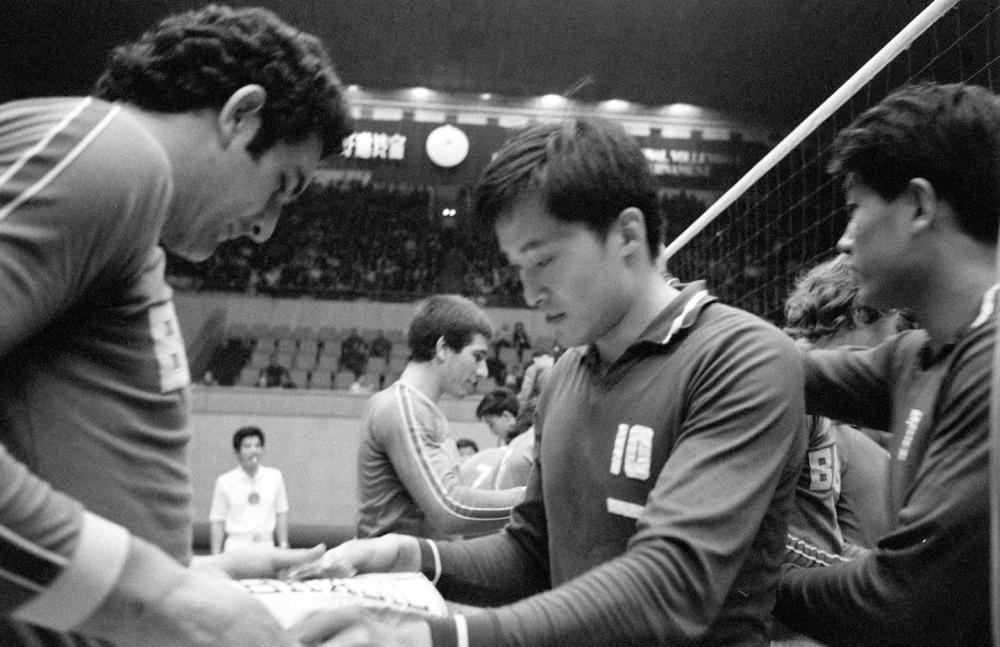 1978年5月18日至25日,北京國際排球友好邀請(qǐng)賽成功舉行。中國隊(duì)與巴西隊(duì)運(yùn)動(dòng)員在比賽前互贈(zèng)禮物。