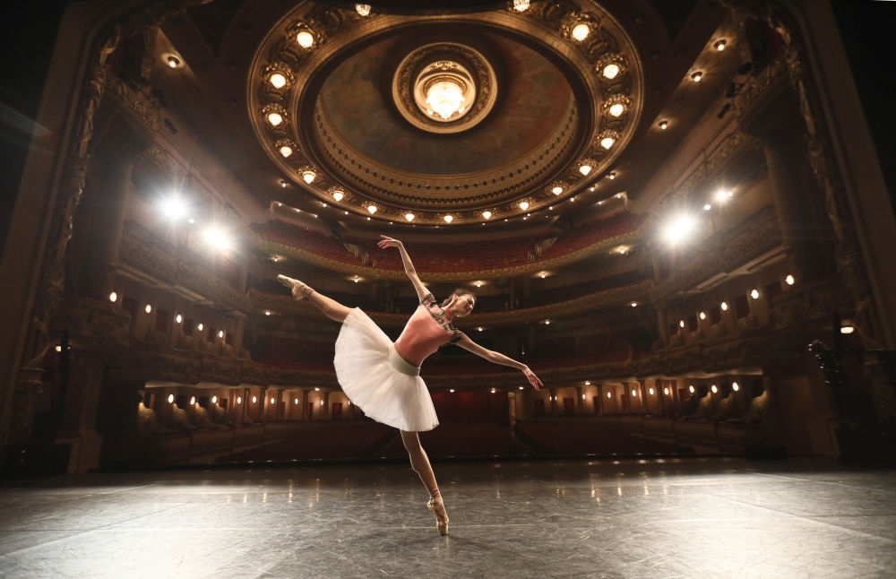 2019年5月24日,中央芭蕾舞團(tuán)演員方夢(mèng)穎在巴西里約熱內(nèi)盧市政劇院排練。中央芭蕾舞團(tuán)攜《大紅燈籠高高掛》來到巴西,為當(dāng)?shù)孛癖姭I(xiàn)上帶有濃郁中國元素的精彩表演。