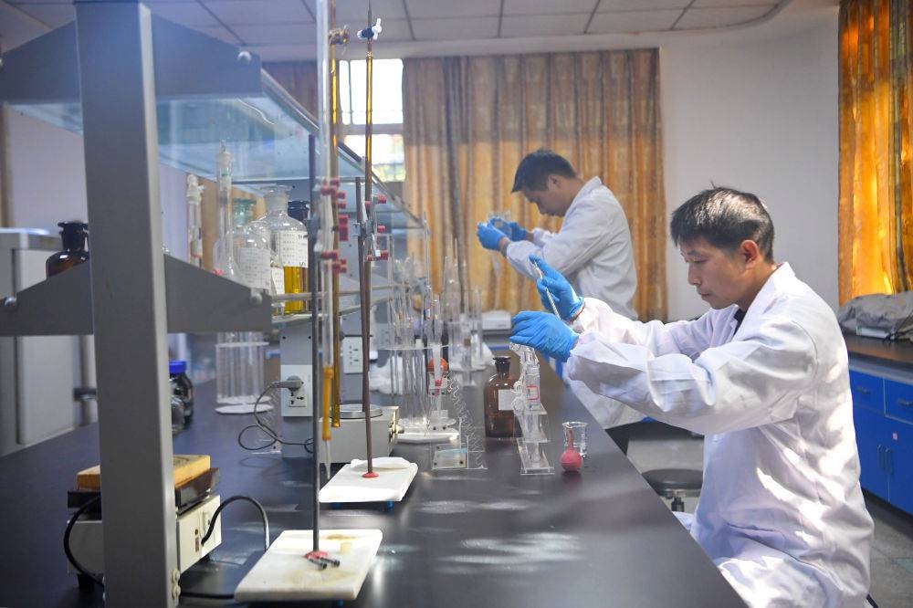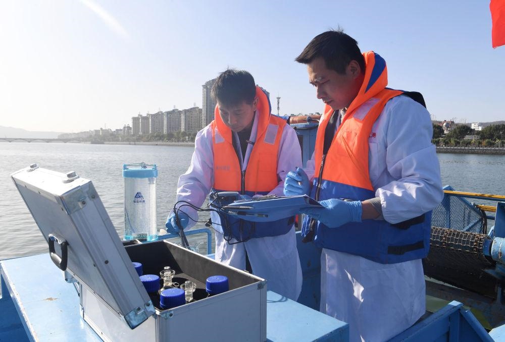 2024年11月28日,在南陽市生態(tài)環(huán)境局淅川分局環(huán)境監(jiān)測站,工作人員在進行水質(zhì)監(jiān)測。