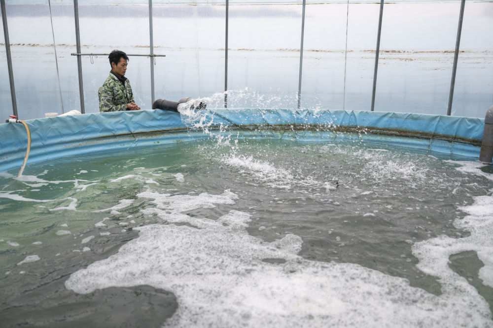 2024年12月8日,湖北農(nóng)發(fā)(丹江口)漁業(yè)科技有限公司工作人員在給魚池放水。品質(zhì)調(diào)控車間內(nèi)的尾水經(jīng)過四級沉淀池后排入生態(tài)塘凈化處理,后進行循環(huán)使用從而減少污染。