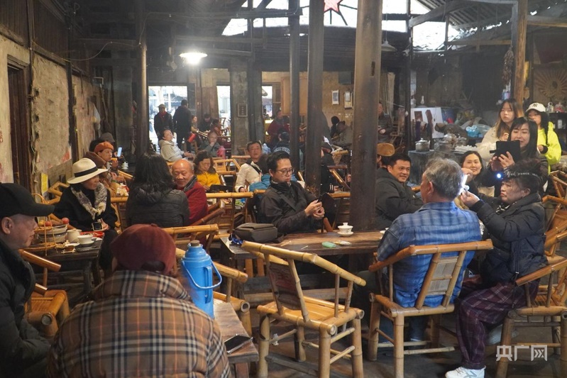在老茶館喝茶休閑的茶客們(央廣網記者 昌思榮 攝)