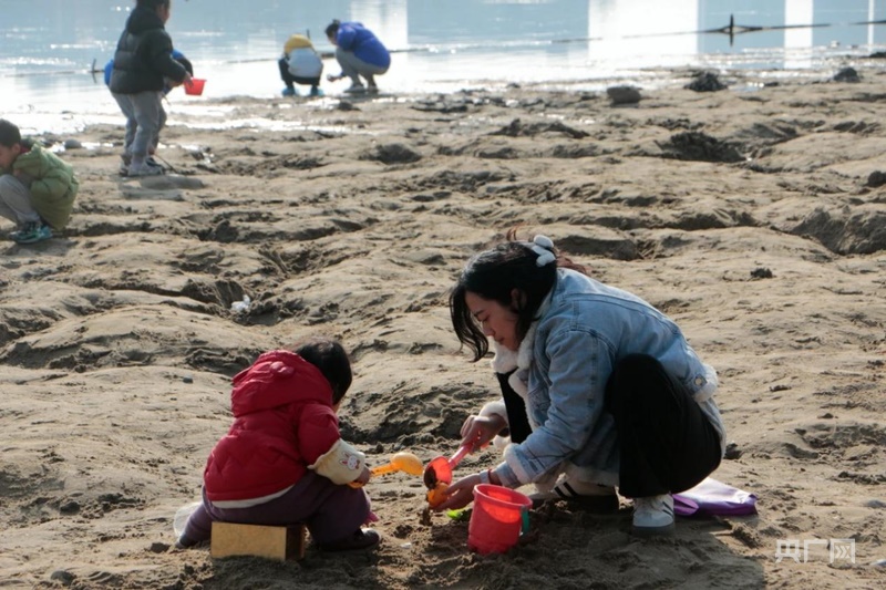 家長帶孩子在興隆湖沙灘上玩耍(央廣網發(fā) 天府新區(qū)融媒中心供圖)