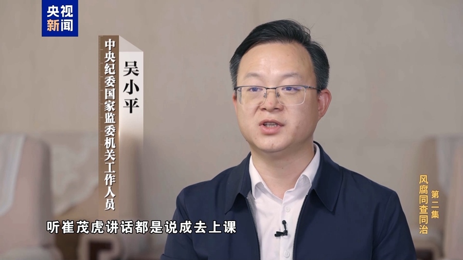 中央紀(jì)委國家監(jiān)委機(jī)關(guān)工作人員 吳小平:崔茂虎特別能講,講起工作來都是長篇大論的,所以麗江當(dāng)?shù)匾恍└刹棵看稳ラ_會(huì),聽崔茂虎講話都說成去上課,去聽崔老師講課,實(shí)際上散了會(huì)就開始到別墅里面跟商人老板在一起吃喝玩樂。