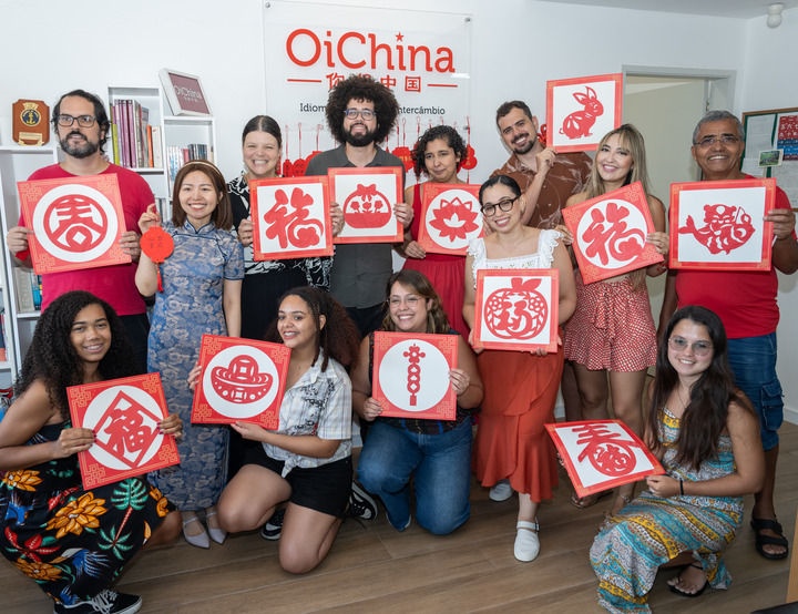 2025年1月18日,人們?cè)诎臀骼锛s熱內(nèi)盧舉行的中國春節(jié)文化體驗(yàn)活動(dòng)上展示他們一起制作的剪紙。新華社記者 王天聰 攝
