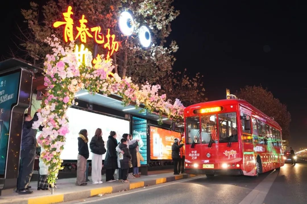 “公交車,既是城市流動的‘風景線’,也是‘文化線’?!焙惞患瘓F運營服務部部長李昀說,全市已推出26路、9路、33路等多條成語文化線路。此外,在53條線路995輛車輛外觀布置成語視覺圖像,在136部公交車內(nèi)打造了“小型成語主題展館”,推出了兩輛夜間成語燈光巴士,建設了72個成語主題公交站亭。