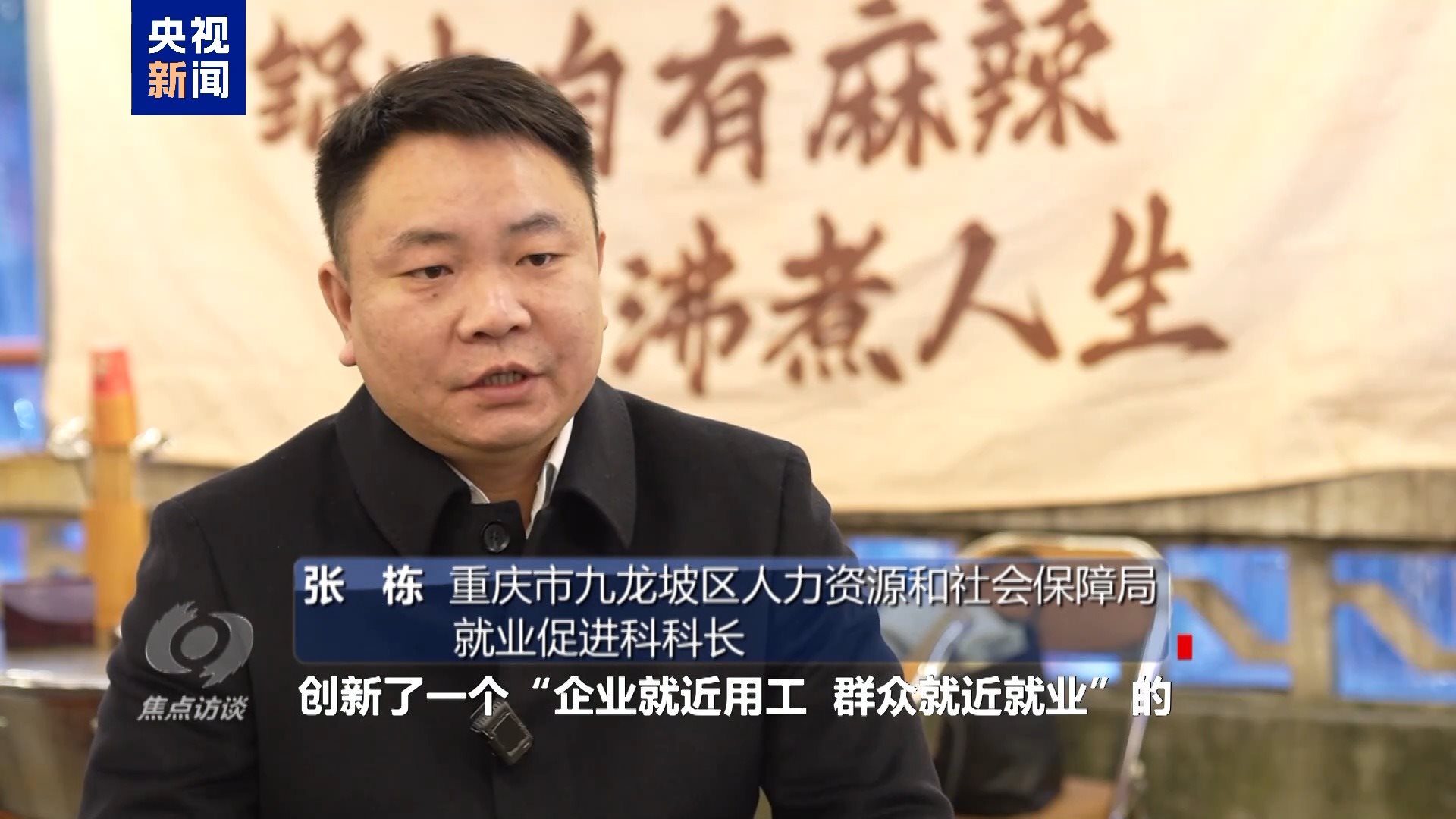 重慶市九龍坡區(qū)人力資源和社會保障局就業(yè)促進科科長 張棟:就業(yè)是最基本的民生,我們貫徹總書記的殷殷囑托,創(chuàng)新了一個“企業(yè)就近用工,群眾就近就業(yè)”的“雙就近”服務(wù)改革。這些火鍋店的員工相對來說年紀比較大。我們通過數(shù)字就業(yè)系統(tǒng)就自動匹配上了,老板很快找到這些員工,而這些孃孃也很快找到工作。其實我們工作的目的說白了,就是讓群眾有活干,有錢賺。