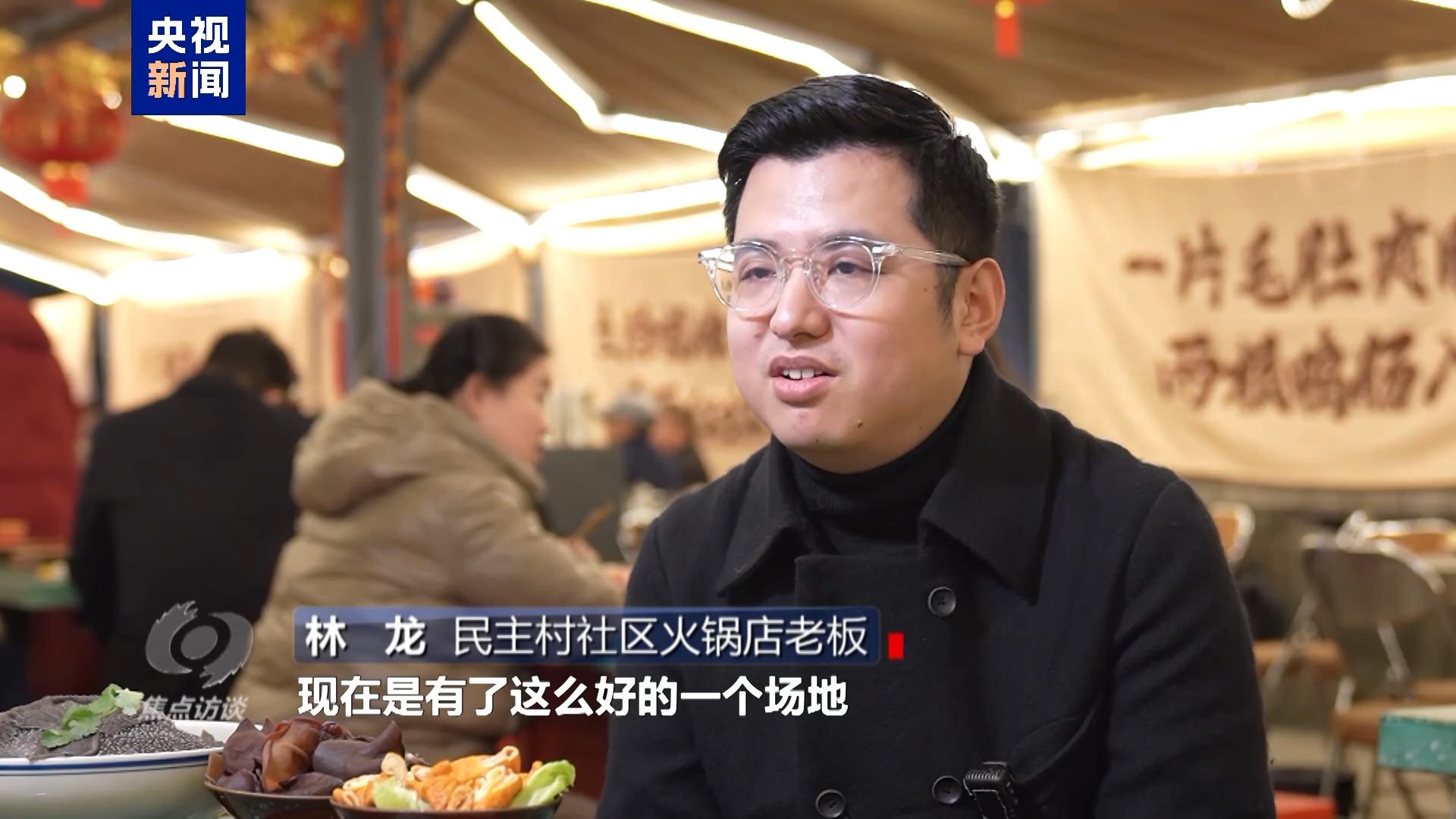 民主村社區(qū)火鍋店老板 林龍:搬過來之前我們是15張桌子左右,現(xiàn)在有了這么好的一個場地,現(xiàn)在已經(jīng)擴大到33張臺。重新開店以后,招工這一塊人社部門也是給予了我們很大支持。