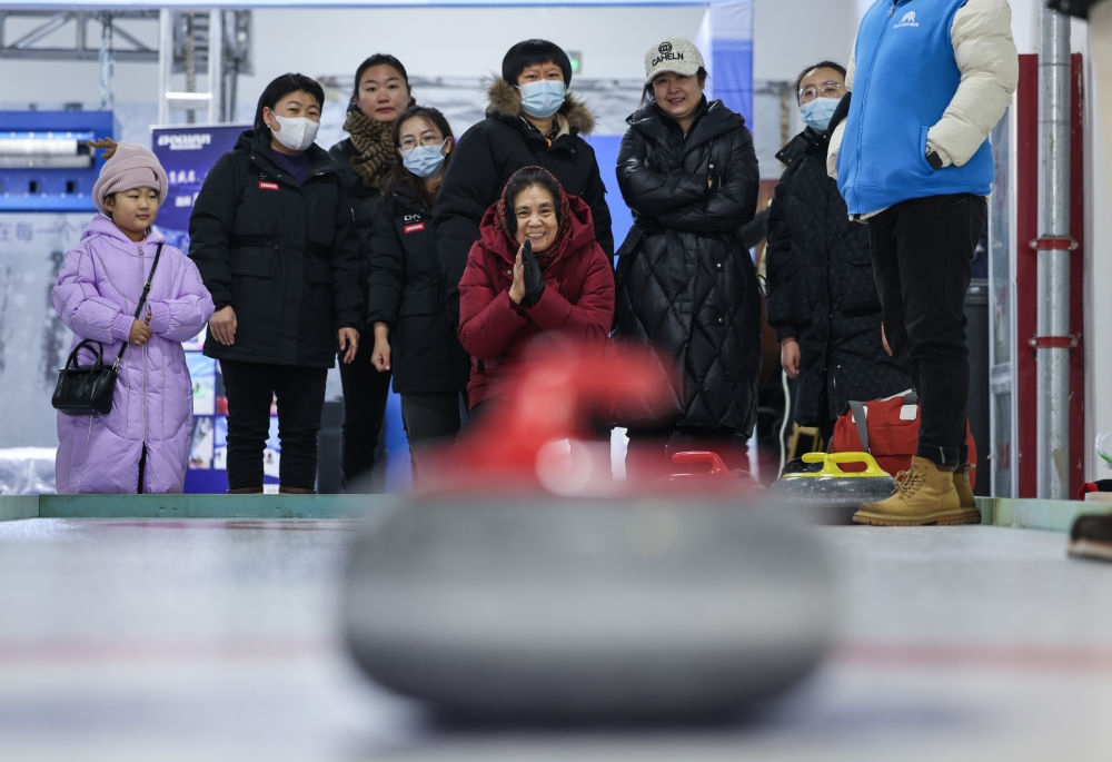 2023年12月16日,首屆呼倫貝爾·海拉爾冰雪產(chǎn)品冬季展銷會在內(nèi)蒙古呼倫貝爾市海拉爾區(qū)開幕,展出冰雪運動裝備、服飾、大型設備等。這是市民在展銷會上體驗冰壺運動。