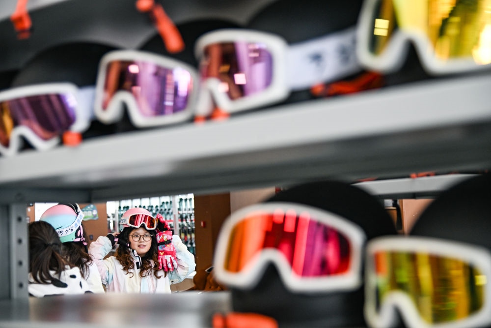2024年12月27日,滑雪愛好者在四川省阿壩藏族羌族自治州汶川縣羌人谷滑雪場租賃滑雪裝備。
