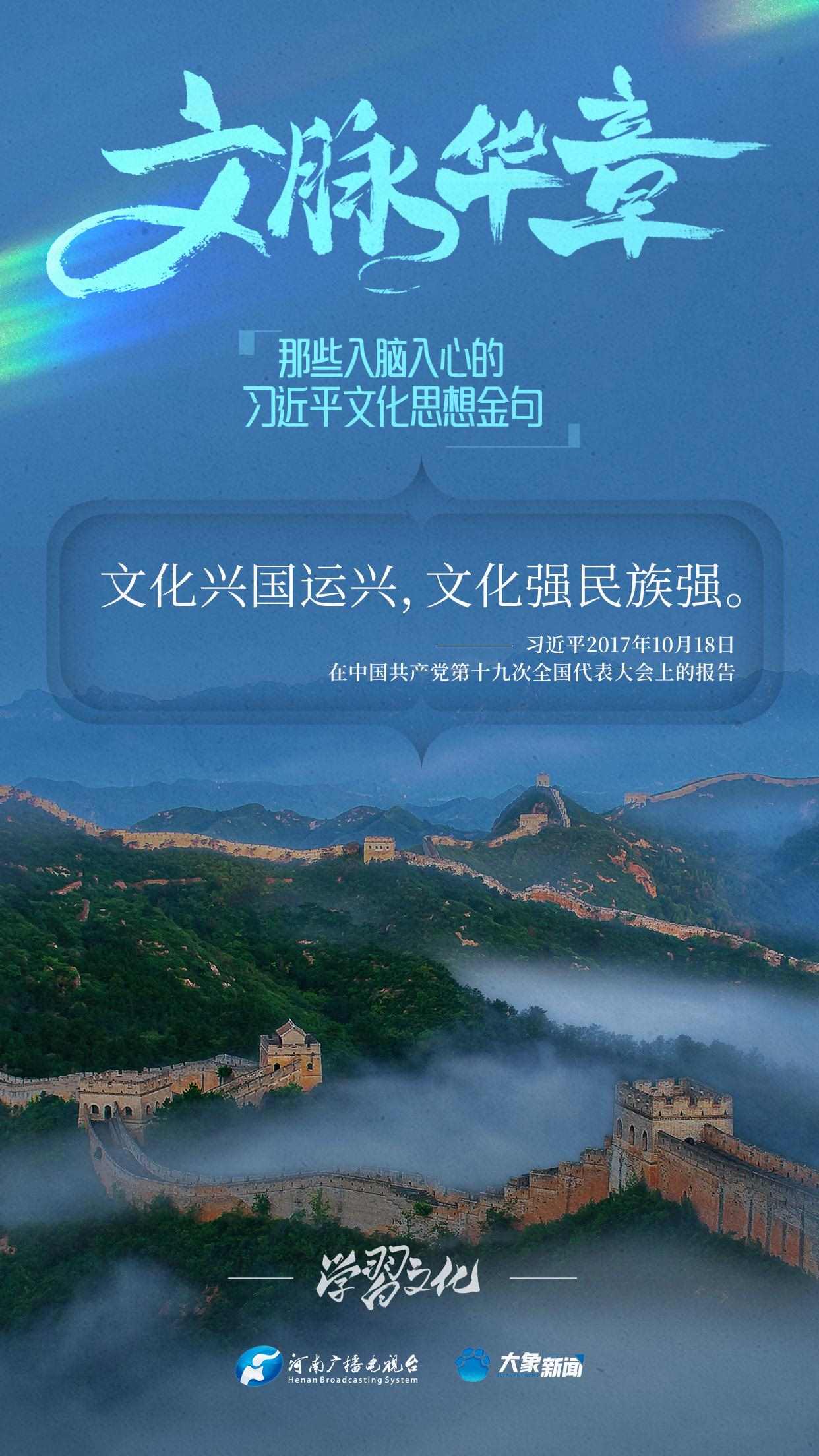 大象新聞將持續(xù)梳理,推出系列策劃《那些入腦入心的習(xí)近平文化思想金句》,邀您一起認(rèn)真品讀。今天推出《文化是一個國家、一個民族的靈魂》。