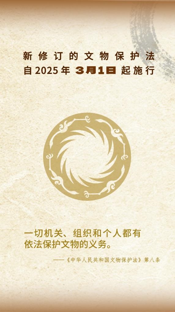 新華社北京3月1日電(記者施雨岑、胡夢(mèng)雪)十四屆全國(guó)人大常委會(huì)第十二次會(huì)議2024年11月8日表決通過(guò)新修訂的文物保護(hù)法,自2025年3月1日起施行。記者3月1日從國(guó)家文物局獲悉,為切實(shí)做好相關(guān)工作,中共中央宣傳部、文化和旅游部、國(guó)家文物局、司法部、住房城鄉(xiāng)建設(shè)部、全國(guó)普法辦公室近日聯(lián)合印發(fā)關(guān)于學(xué)習(xí)宣傳貫徹《中華人民共和國(guó)文物保護(hù)法》的通知。